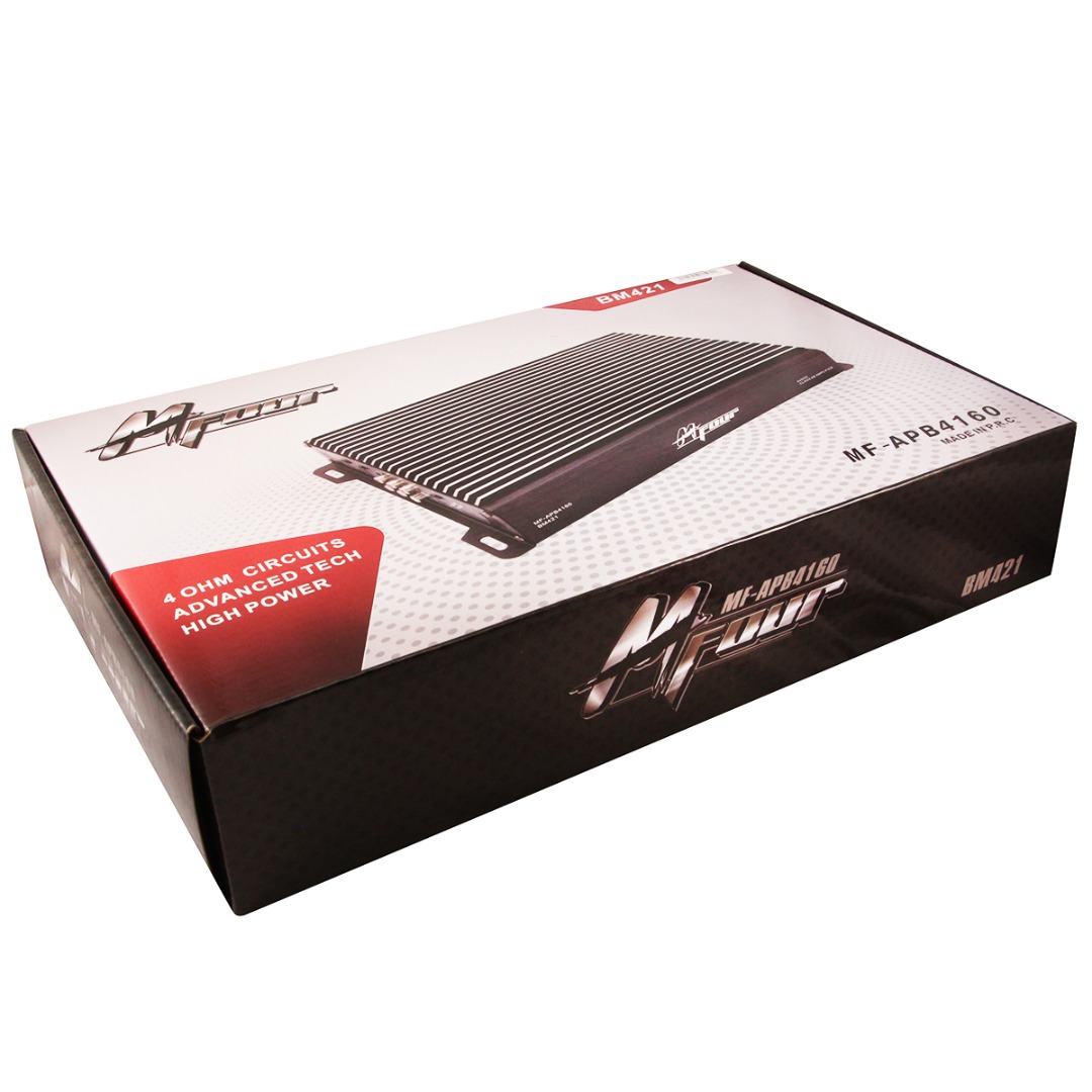 بسیاری از کاربران سیستمهای صوتی اتومبیل دوست دارند صدایی فراتر از آنچه که پخشکننده به تنهایی تولید میکند را در اتومبیل بشنوند. به همین خاطر آمپلیفایرهای قدرتمند ویژهی اتومبیل به کمک آنها میآیند و صدای خروجی پخشکنندهها را تا میزان زیادی تقویت میکنند. MFOUR یکی از معتبرترین سازندههای این تجهیزات است که محصولاتش از محبوبیت بالایی در میان علاقمندان سیستمهای صوتی برخوردارند. یکی از محصولات تقویت کنندهی صدا از کمپانی MFOUR آمپلیفایر چهار کاناله مدل « BM421» است که با بهرهمندی از حداکثر توان خروجی 6000 وات و توان اسمی 4x80 وات ار ام اس میتواند تا حد زیادی قدرت صدای خروجی از بلندگوهای کارگذاشته شده در اتومبیل را تقویت کند. این مدل دارای فرکانس پاسخگویی 10 تا 70هزار هرتزی بوده و صدا را در این محدوده پخش میکند. همچنین نسبت سیگنال به نویز 9۵ دسیبلی این آمپلیفایر، باعث میشود که صدا با کمترین نویز ممکن پخش شود. آمپلیفایرهای جدید MFOUR با ظاهری مدرن به بازار عرضه شدهاند.