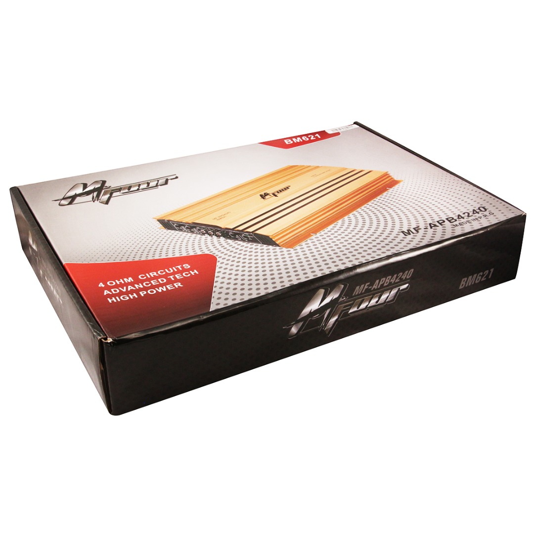 بسیاری از کاربران سیستمهای صوتی اتومبیل دوست دارند صدایی فراتر از آنچه که پخشکننده به تنهایی تولید میکند را در اتومبیل بشنوند. به همین خاطر آمپلیفایرهای قدرتمند ویژهی اتومبیل به کمک آنها میآیند و صدای خروجی پخشکنندهها را تا میزان زیادی تقویت میکنند. MFOUR یکی از معتبرترین سازندههای این تجهیزات است که محصولاتش از محبوبیت بالایی در میان علاقمندان سیستمهای صوتی برخوردارند. یکی از محصولات تقویت کنندهی صدا از کمپانی MFOUR آمپلیفایر چهار کاناله مدل « BM621» است که با بهرهمندی از حداکثر توان خروجی 5000 وات و توان اسمی 4x60 وات ار ام اس میتواند تا حد زیادی قدرت صدای خروجی از بلندگوهای کارگذاشته شده در اتومبیل را تقویت کند. این مدل دارای فرکانس پاسخگویی 10 تا 70هزار هرتزی بوده و صدا را در این محدوده پخش میکند. همچنین نسبت سیگنال به نویز 9۵ دسیبلی این آمپلیفایر، باعث میشود که صدا با کمترین نویز ممکن پخش شود. آمپلیفایرهای جدید MFOUR با ظاهری مدرن به بازار عرضه شدهاند.